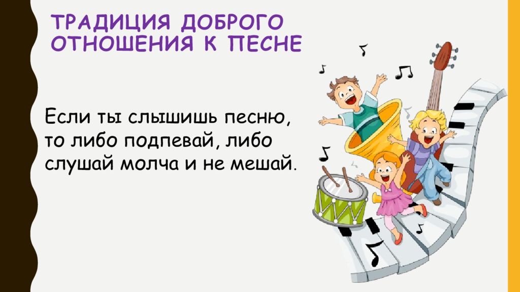 Слайд 19: традиция доброго отношения к песне