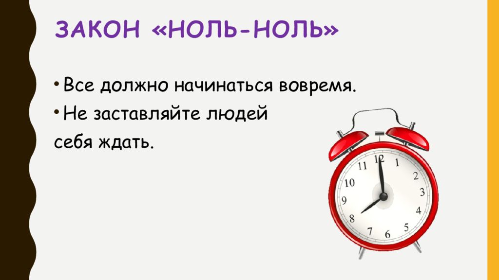Все должно начинаться вовремя. Не заставляйте людей себя ждать.