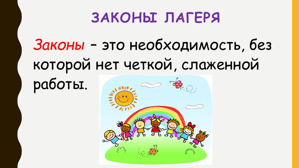 Слайд 2: Законы лагеря