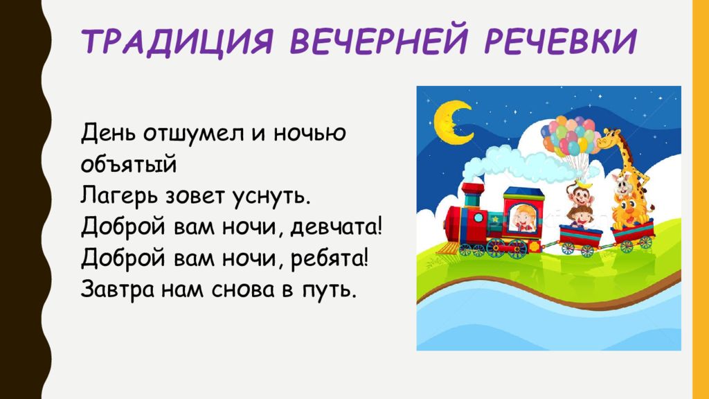 Слайд 22: Традиция вечерней речевки