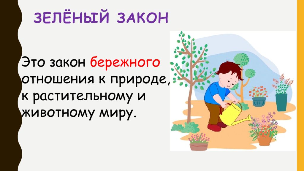 Это закон бережного отношения к природе, к растительному и животному миру.