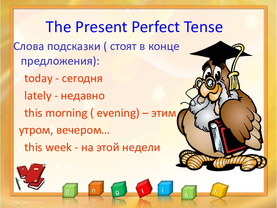 Слова подсказки ( стоят в конце предложения): today - сегодня lately - недавно this morning ( evening) – этим утром, вечером… this week - на этой недели