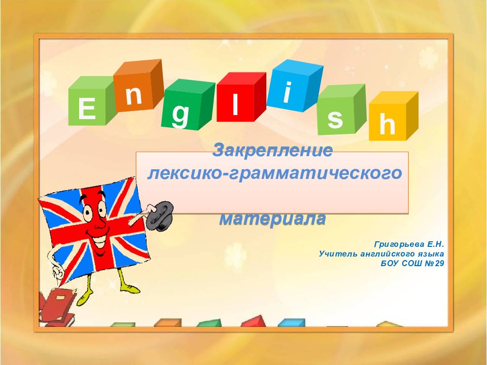 E n g l s i h Григорьева Е.Н. Учитель английского языка БОУ СОШ № 29
