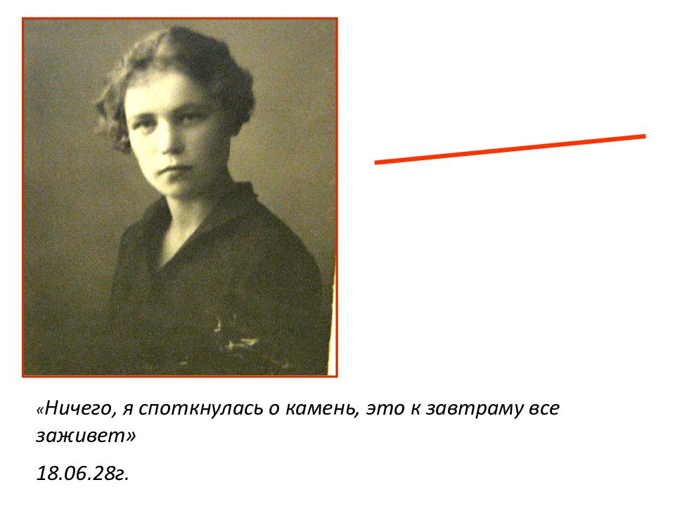 1928 год « Ничего, я споткнулась о камень, это к завтраму все заживет» 18.06.28г.