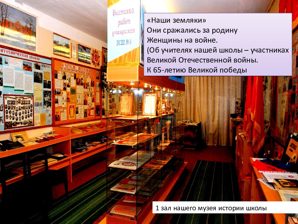 1 зал нашего музея истории школы «Наши земляки» Они сражались за родину Женщины на войне. (Об учителях нашей школы – участниках Великой Отечественной войны. К 65-летию Великой победы