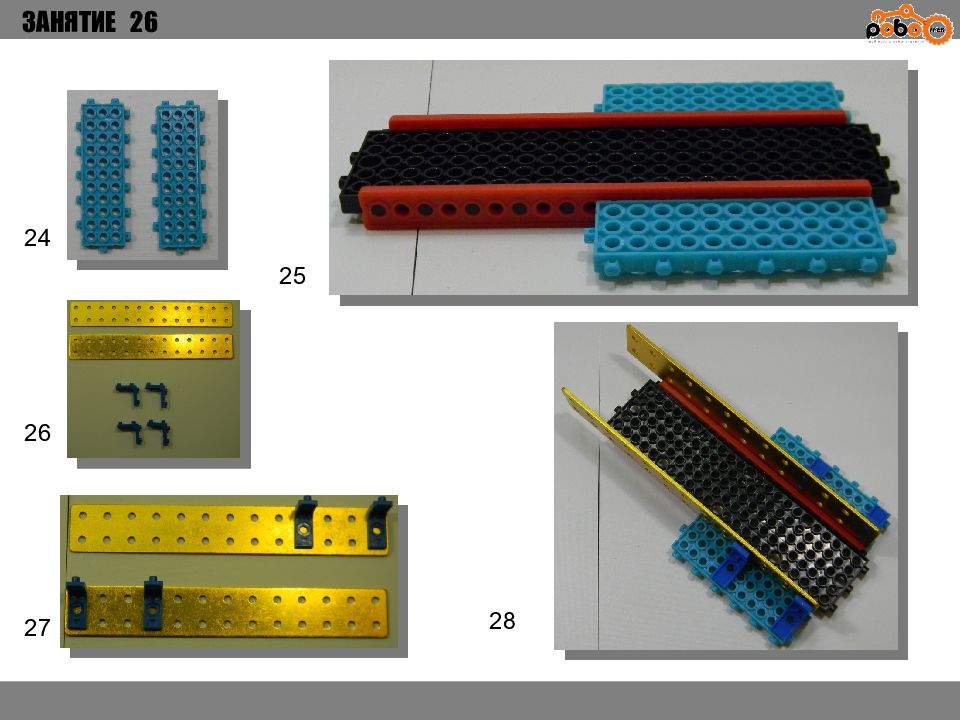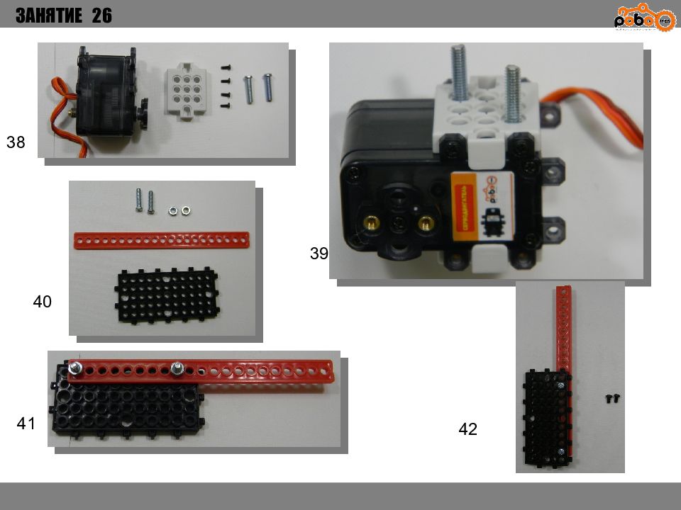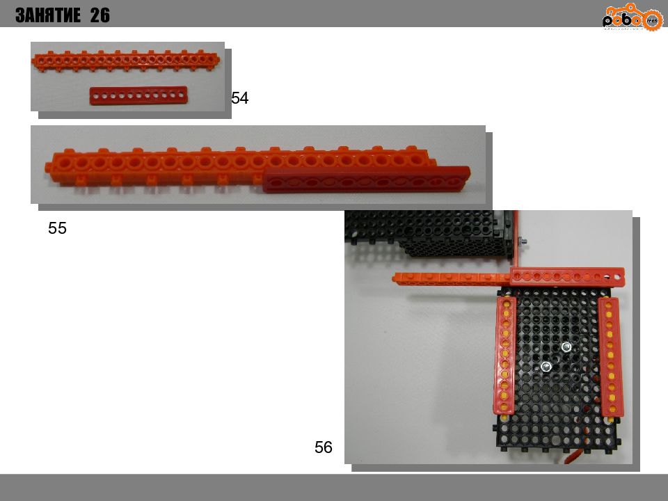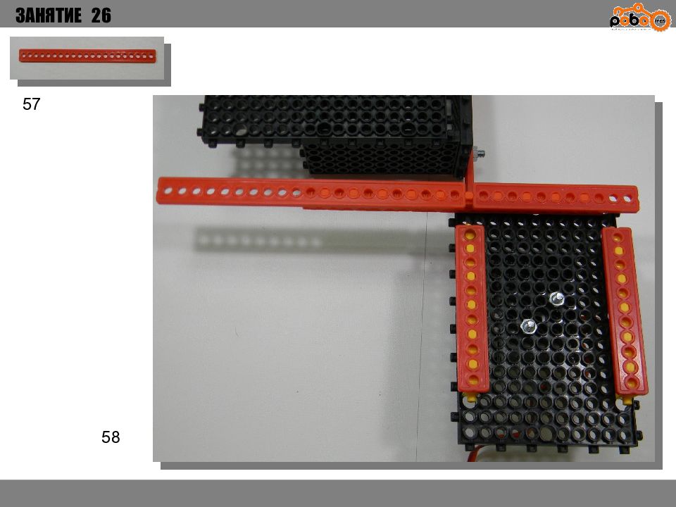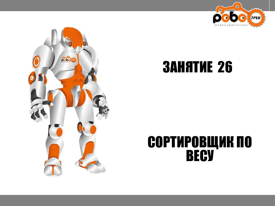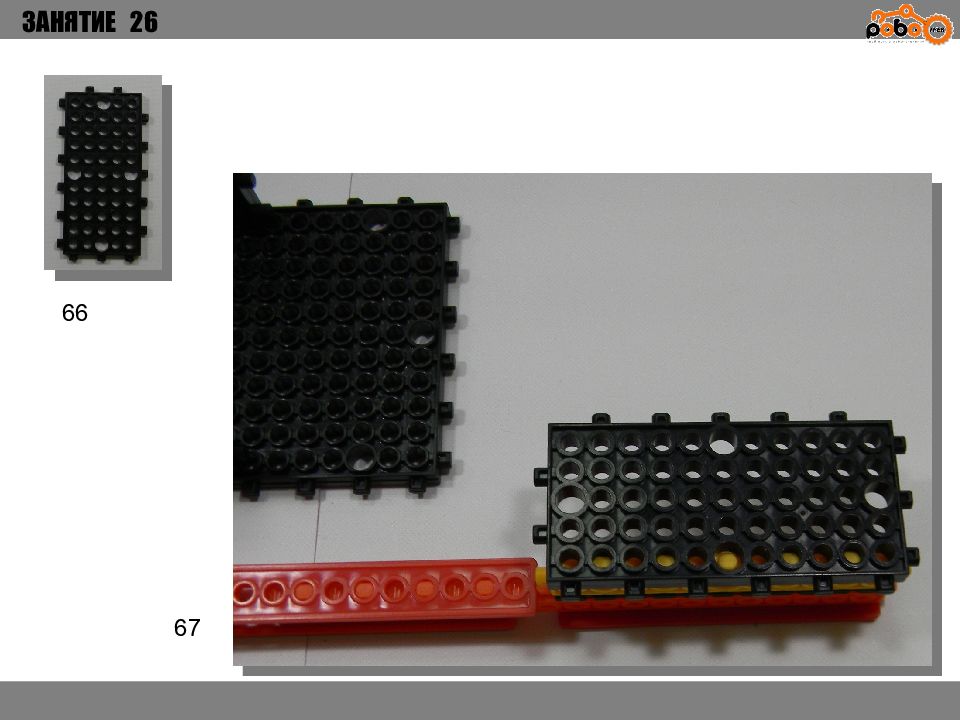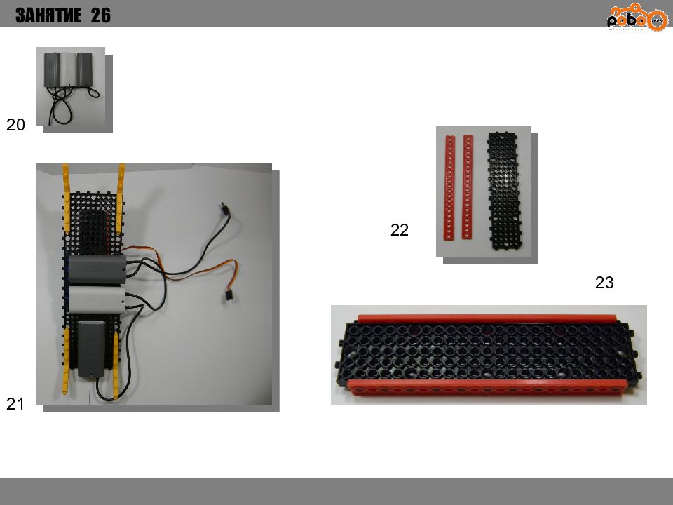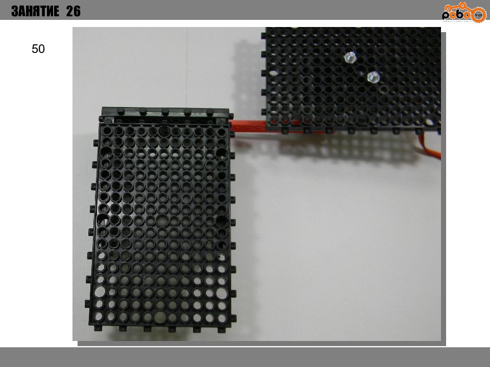 ЗАНЯТИЕ 26 КАК ЗАПУСТИТЬ ПРОЕКТ Подключите: Серводвигатель в порт OUT1 ; Зеленый светодиод в порт OUT 2 ; Зеленый светодиод в порт OUT 3 ; Датчик наклона в порт IN1. Загрузите программу в плату. Программа автоматически запустится после включения. Опускайте тяжелые металлические блоки в сортировщик, посмотрите как работает система. Попробуйте добавить борта в перекладываемый механизм для более лучшей фиксации деталей.