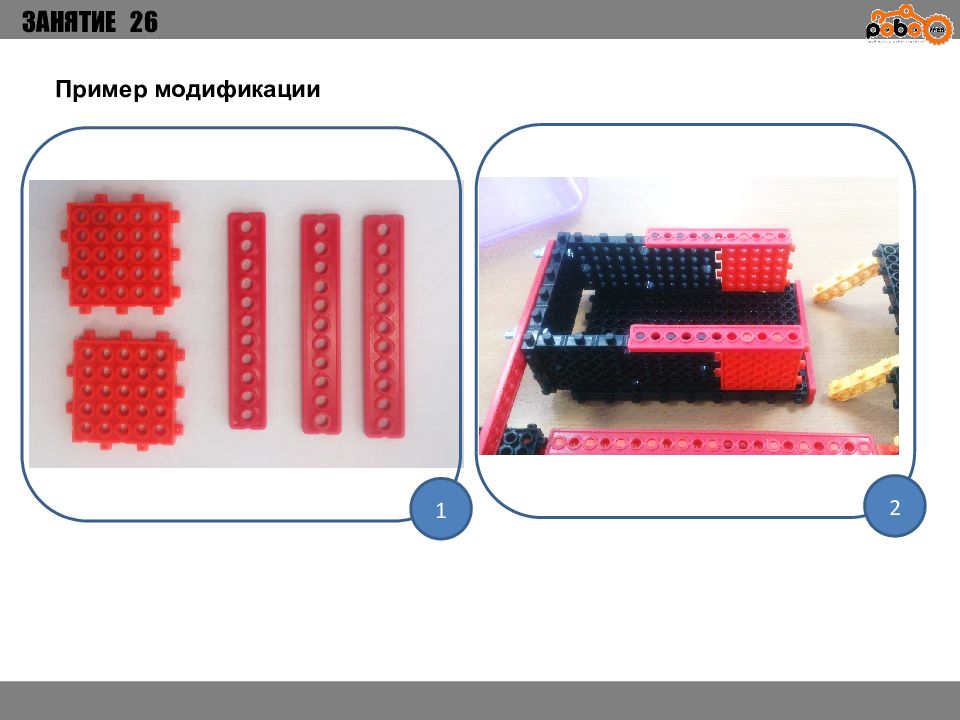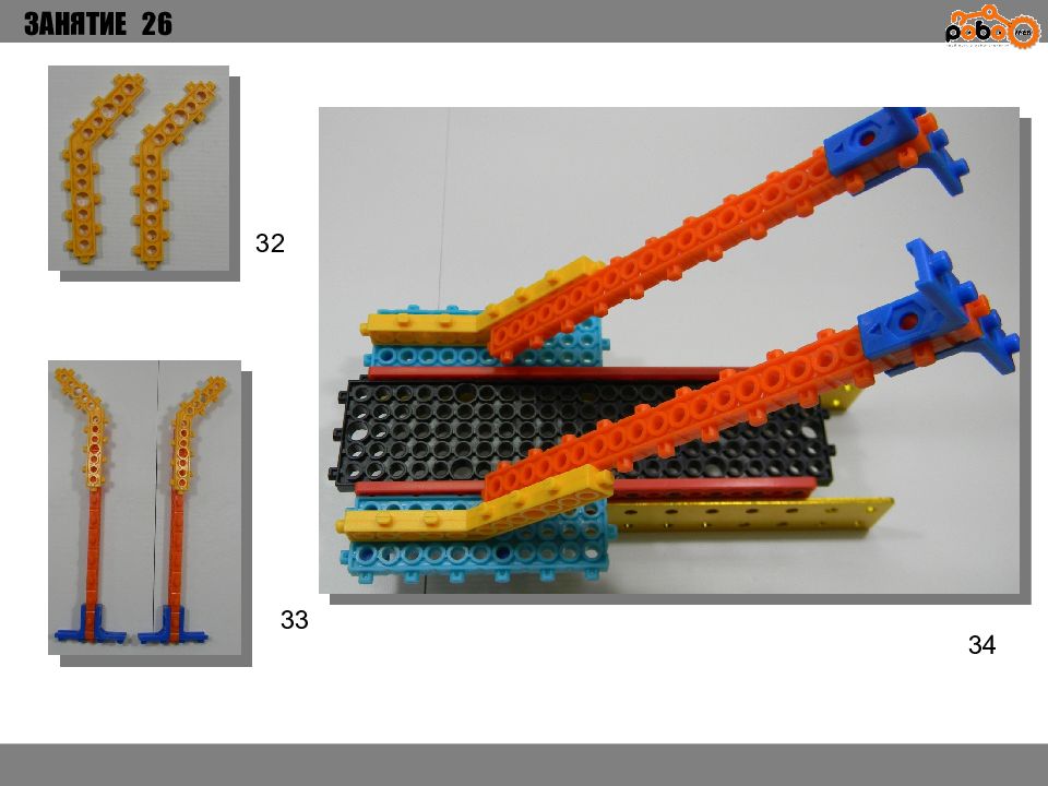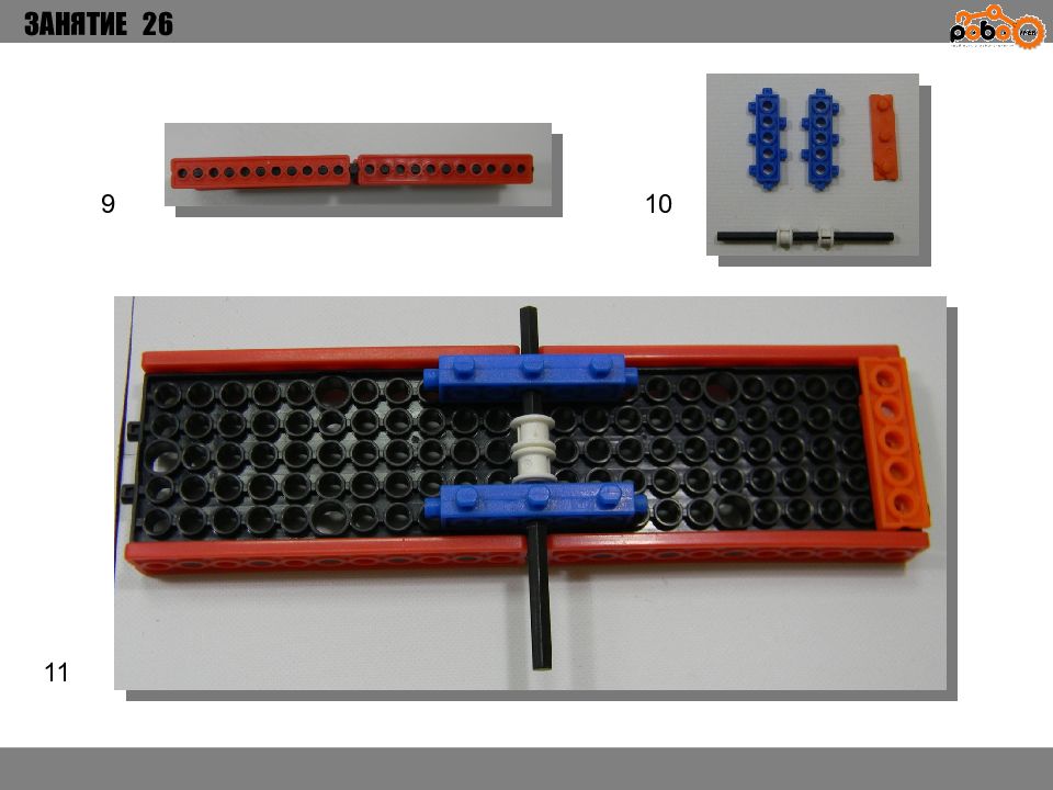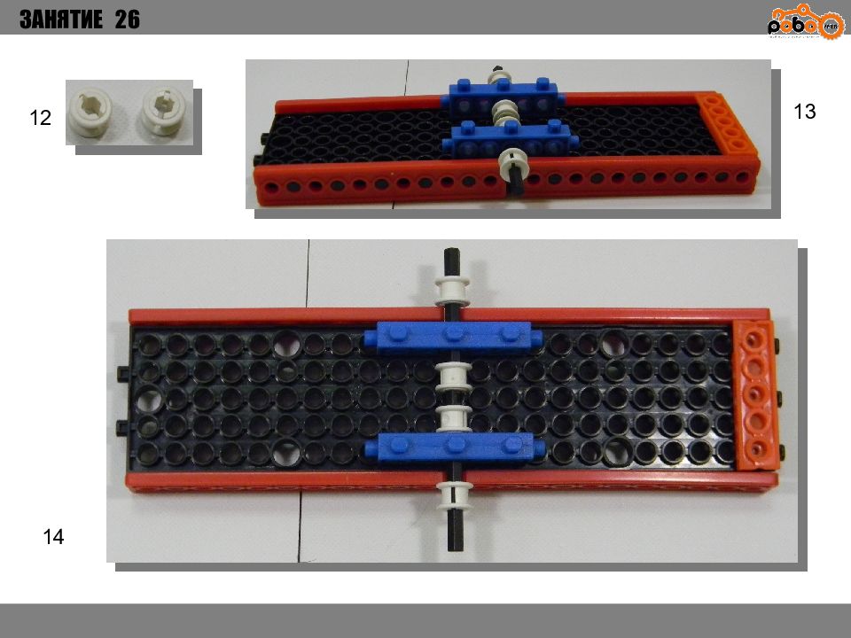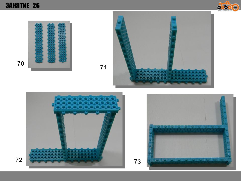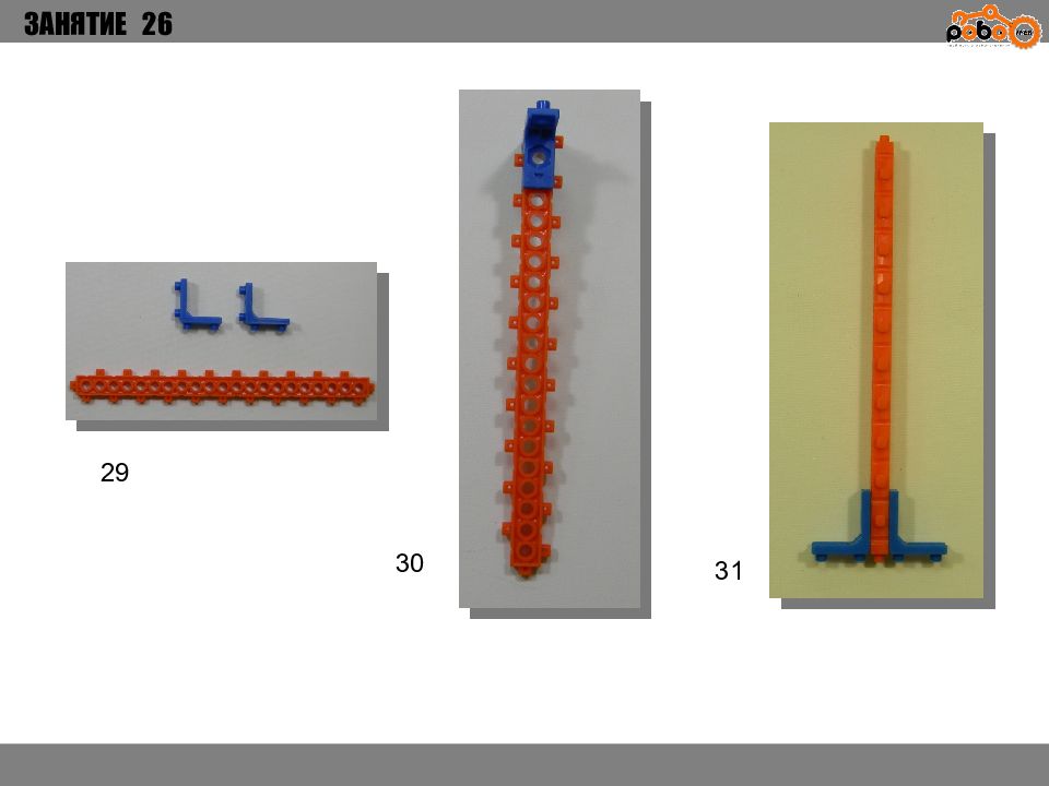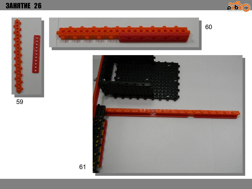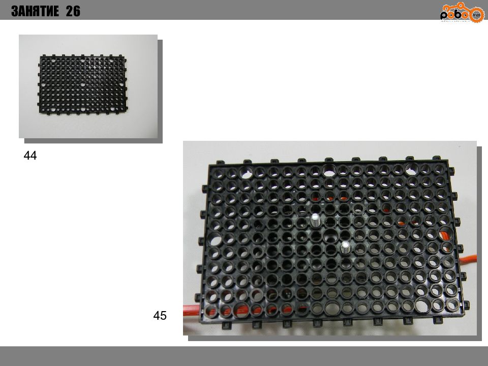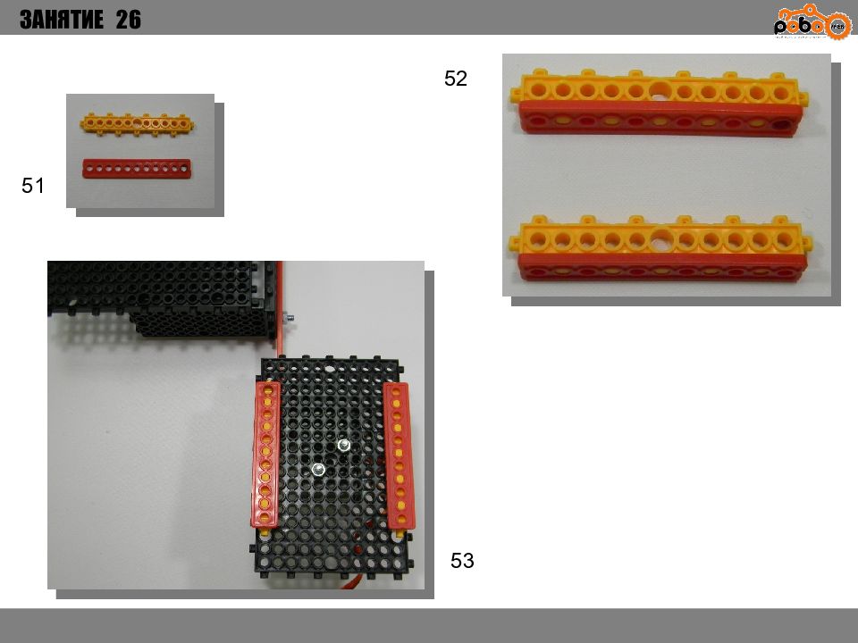 ЗАНЯТИЕ 26 КАК ЗАПУСТИТЬ ПРОЕКТ Подключите: Серводвигатель в порт OUT1 ; Зеленый светодиод в порт OUT 2 ; Зеленый светодиод в порт OUT 3 ; Датчик наклона в порт IN1. Загрузите программу в плату. Программа автоматически запустится после включения. Опускайте тяжелые металлические блоки в сортировщик, посмотрите как работает система. Попробуйте добавить борта в перекладываемый механизм для более лучшей фиксации деталей.