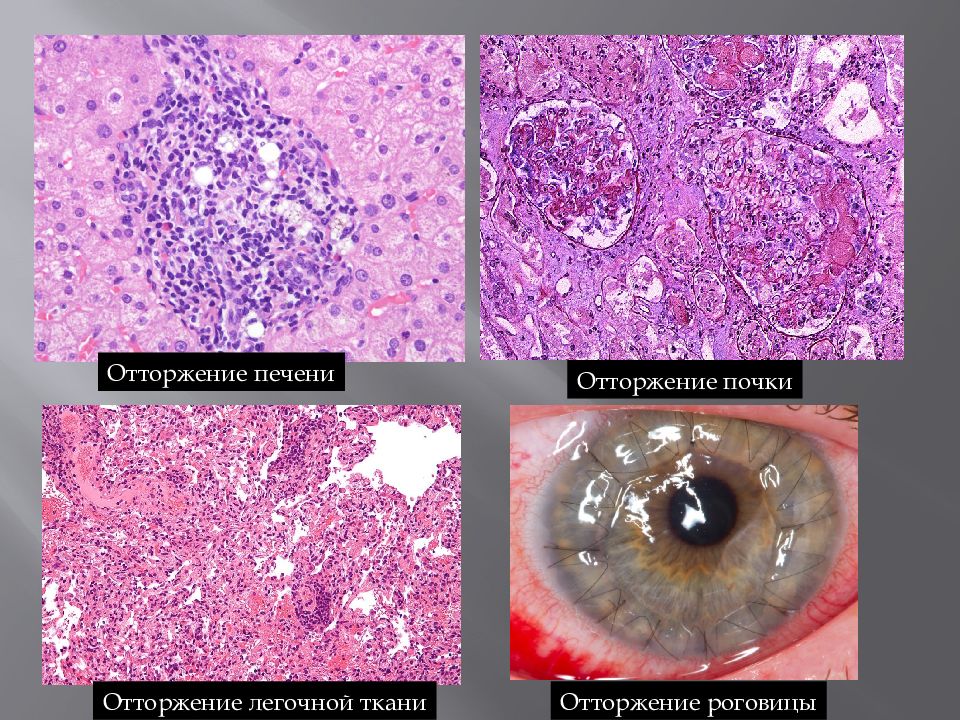 Отторжение легочной ткани Отторжение печени Отторжение почки Отторжение роговицы