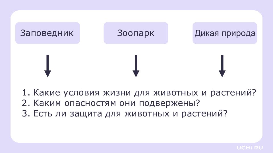 Заповедник Зоопарк Дикая природа Какие условия жизни для животных и растений? Каким опасностям они подвержены? Есть ли защита для животных и растений?