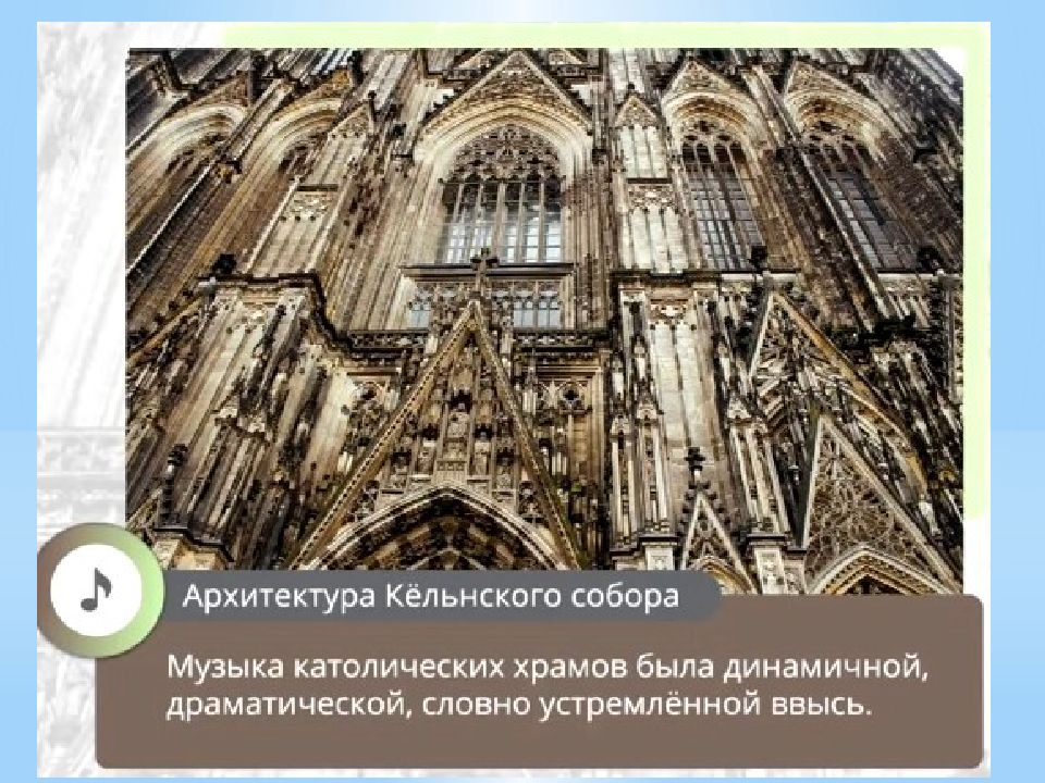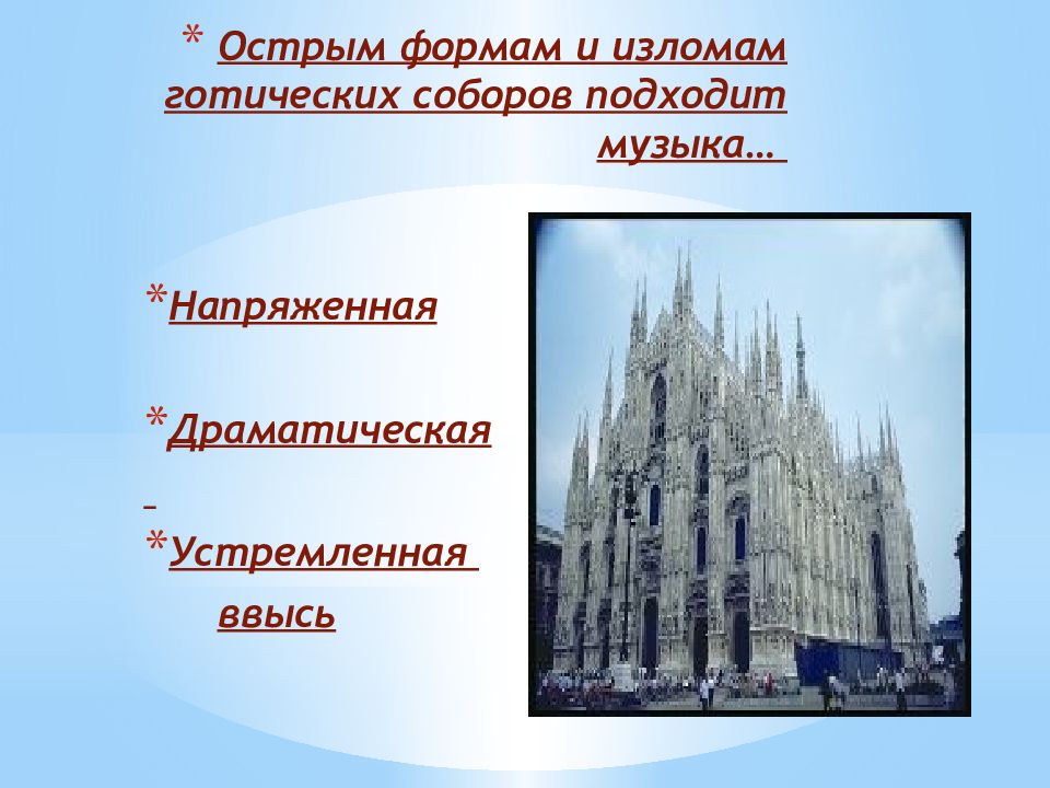 Слайд 5: Острым формам и изломам готических соборов подходит музыка…