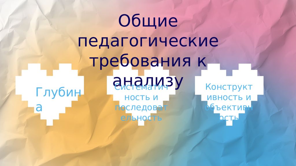 Общие педагогические требования к анализу Глубина Систематичность и последовательность Конструктивность и объективность