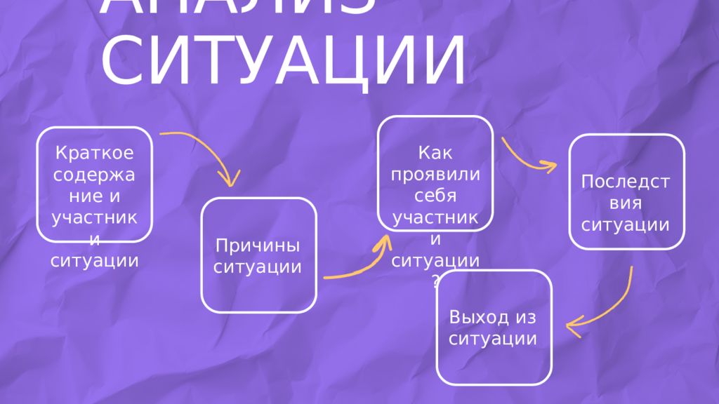АНАЛИЗ СИТУАЦИИ Краткое содержание и участники ситуации Причины ситуации Как проявили себя участники ситуации? Последствия ситуации Выход из ситуации
