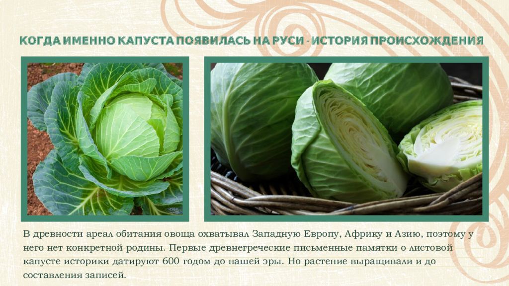 Слайд 6: История появления капусты на Руси