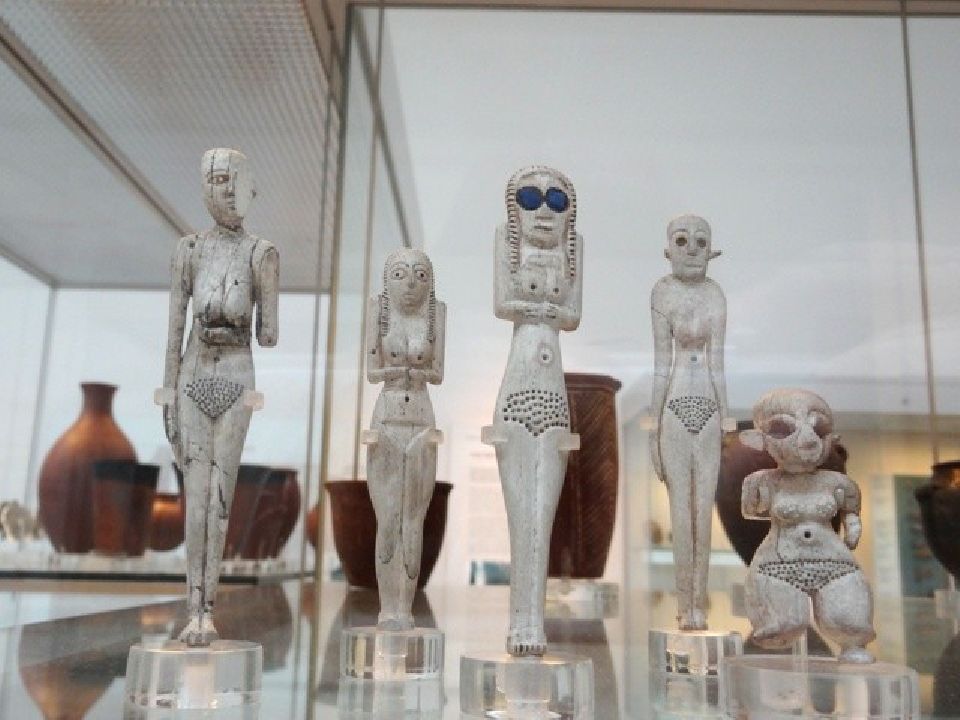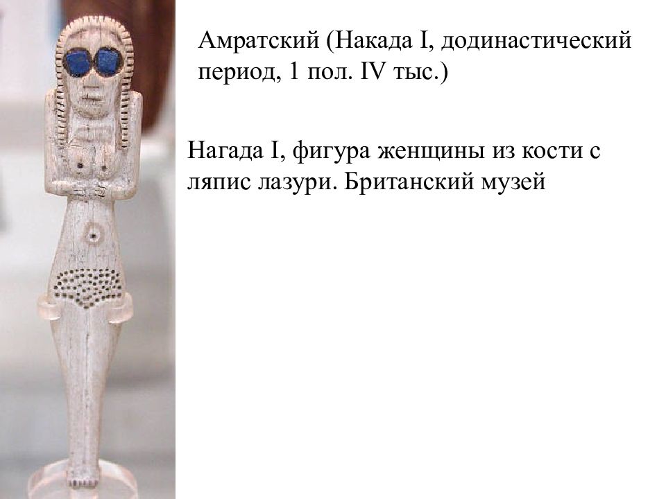 Амратский (Накада I, додинастический период, 1 пол. IV тыс.) Нагада I, фигура женщины из кости с ляпис лазури. Британский музей