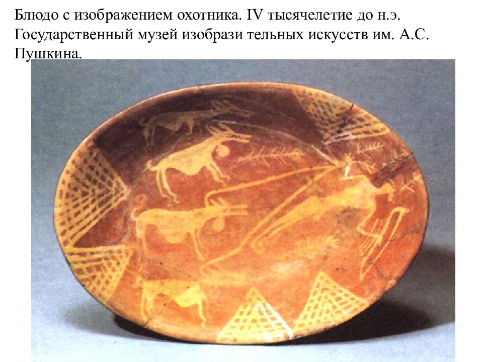 Блюдо с изображением охотника. IV тысячелетие до н.э. Государственный музей изобрази тельных искусств им. А.С. Пушкина.