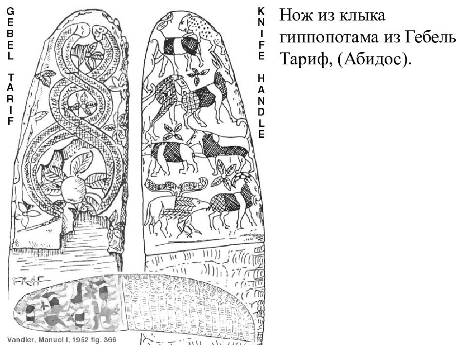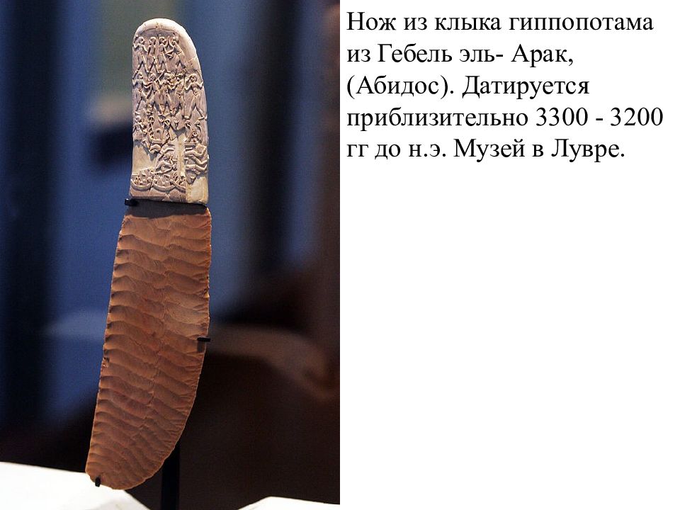 Нож из клыка гиппопотама из Гебель эль- Арак, (Абидос). Датируется приблизительно 3300 - 3200 гг до н.э. Музей в Лувре.