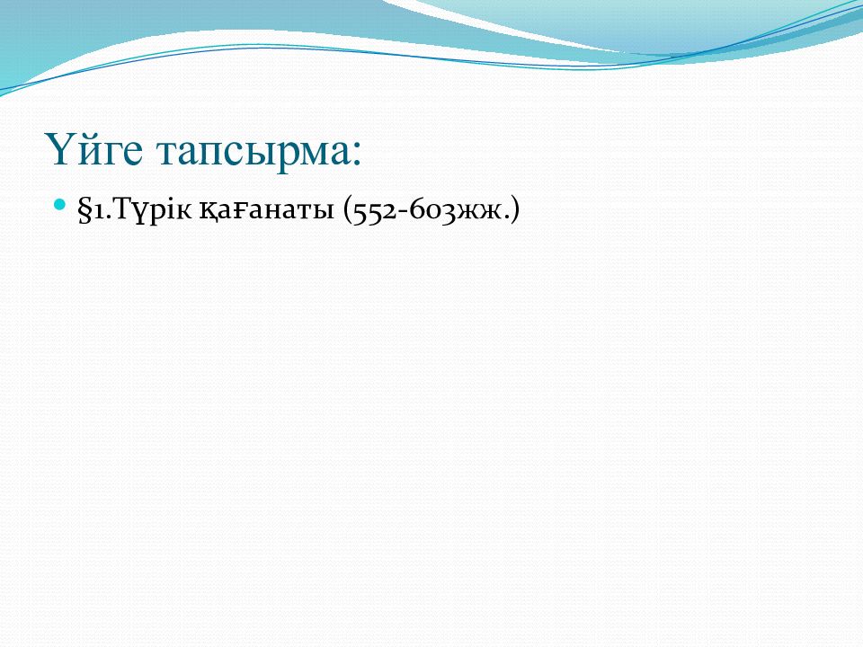 Первый слайд презентации: Жаңа сабақ тақырыбы : Ерте орта ғасырдағы мемлекеттер: Түрік қағанаты (552-603)