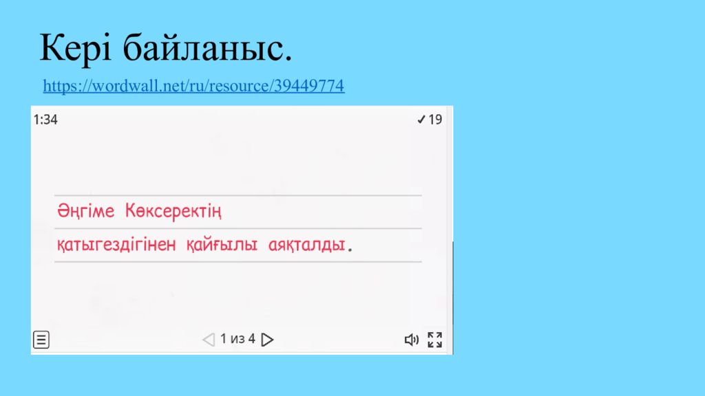 Кері байланыс. https://wordwall.net/ru/resource/39449774 Сілтемесі бойынша іске асады.