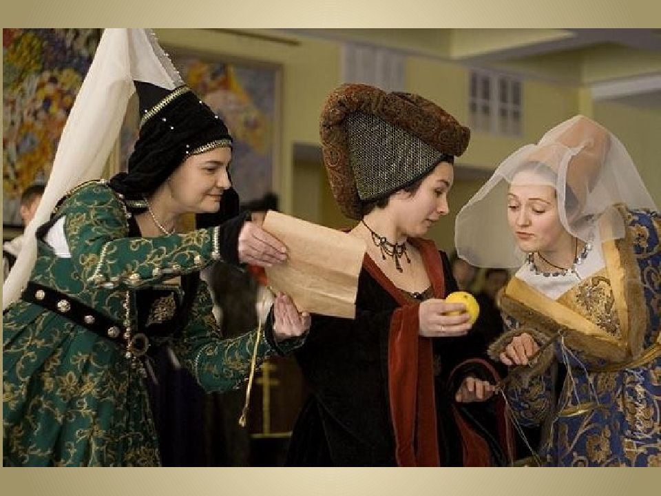 Последний слайд презентации: Женский костюм XV века: В презентации использованы материалы: