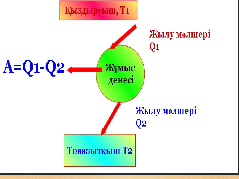 Жылу қозғалтқыштары деп - жүйенің ішкі энергиясының бір бөлігін механикалық энергияға айналдыратын және соның есебінен жұмыс істейтін құрылғыларды айта й ды