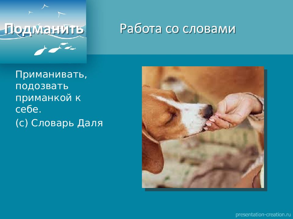 Приманивать, подозвать приманкой к себе. (с) Словарь Даля Работа со словами Подманить