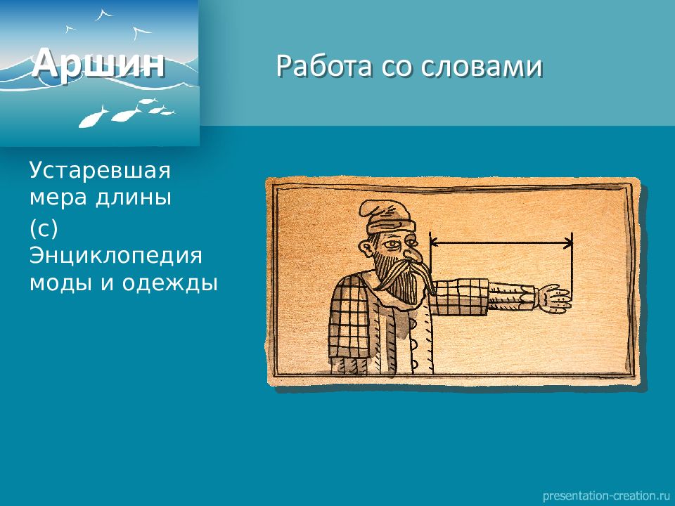 Устаревшая мера длины (с) Энциклопедия моды и одежды Работа со словами Аршин