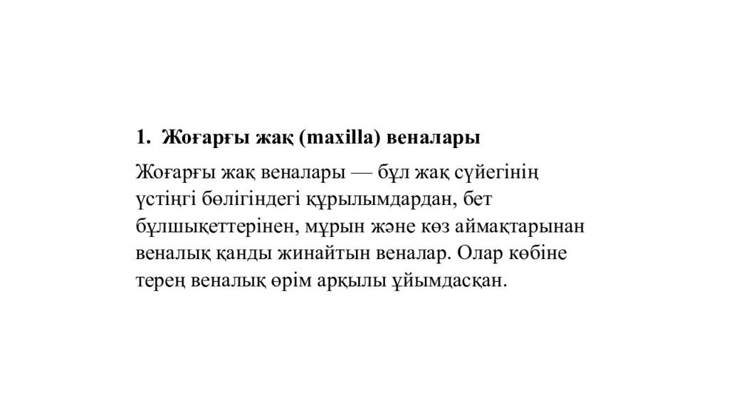Последний слайд презентации: 1. Жоғарғы жақ (maxilla) веналары Жоғарғы жақ веналары — бұл жақ сүйегінің