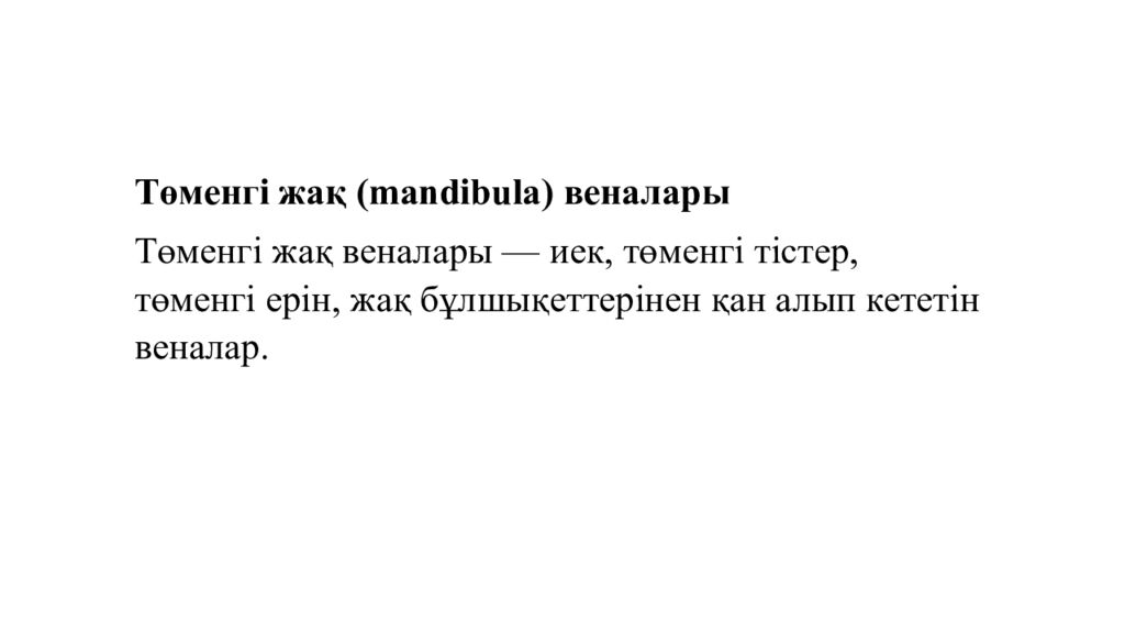 Төменгі жақ ( mandibula ) веналары Төменгі жақ веналары — иек, төменгі тістер, төменгі ерін, жақ бұлшықеттерінен қан алып кететін веналар.
