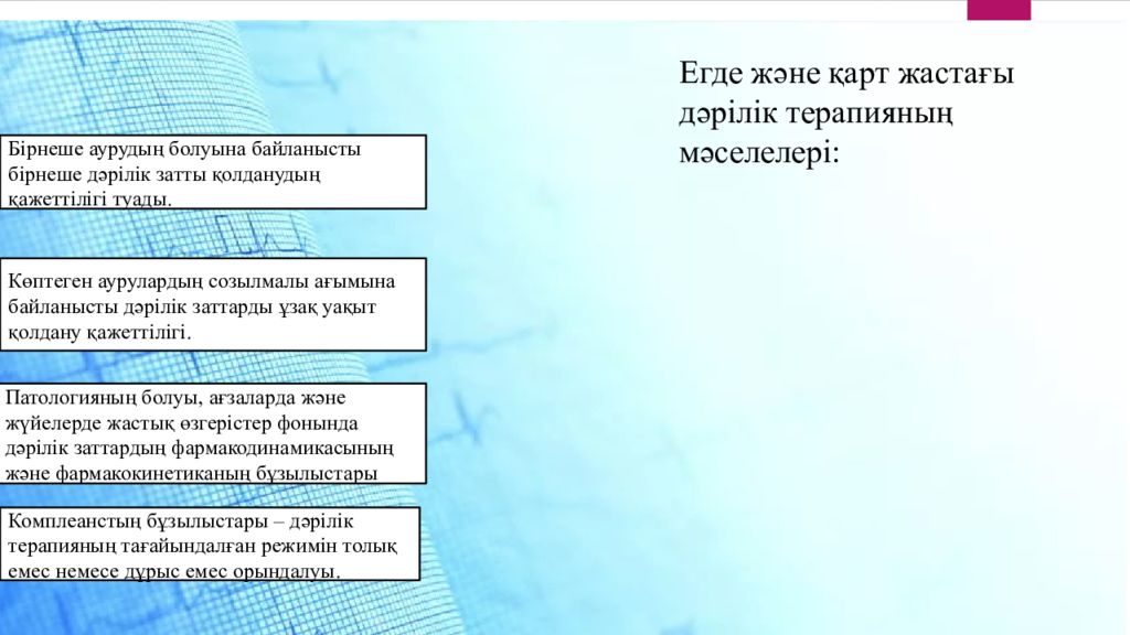 Слайд 5: Егде және қарт жастағы дәрілік терапияның мәселелері :