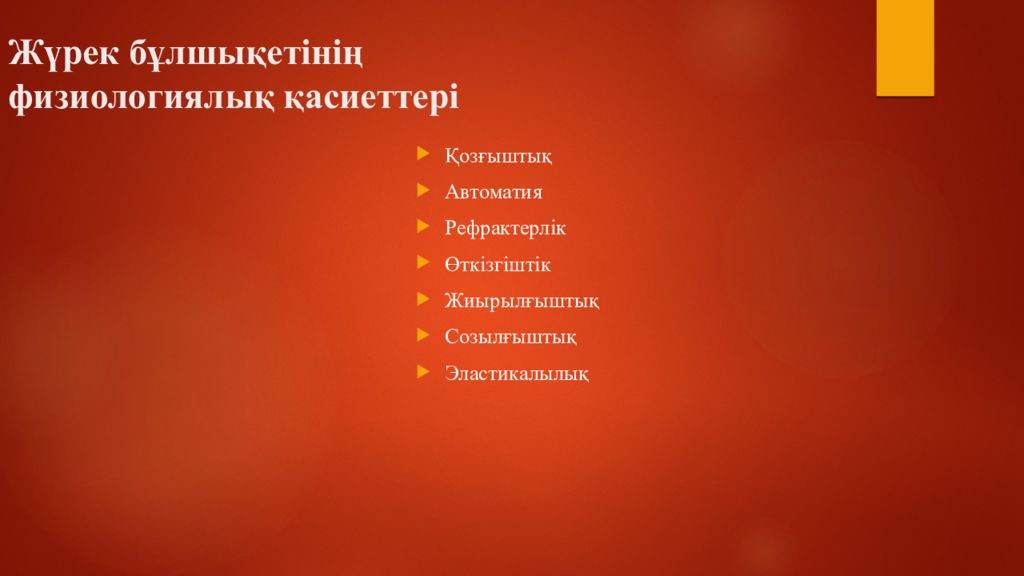 Слайд 8: Жүрек бұлшықетінің физиологиялық қасиеттері