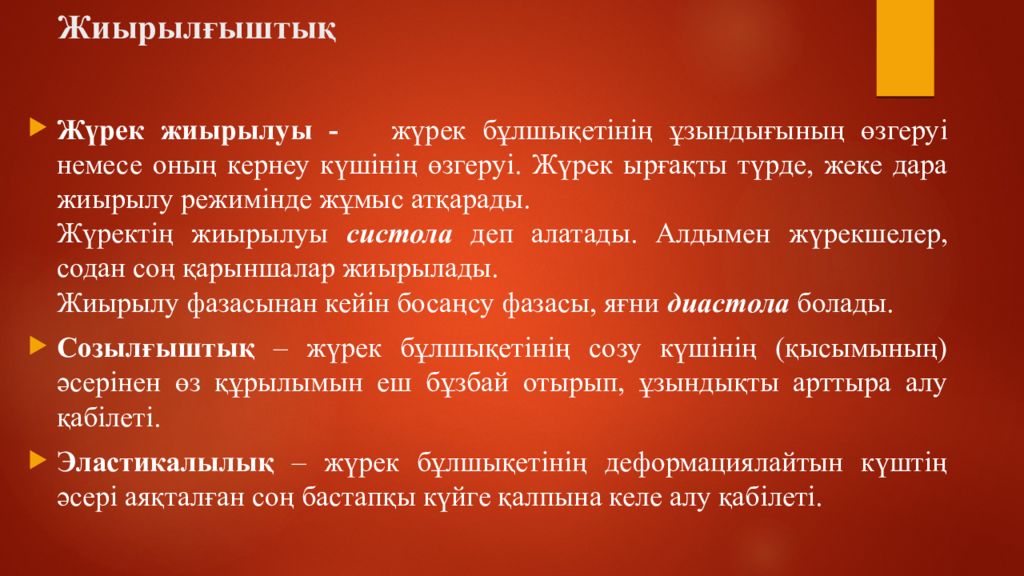 Қозғыштық Автоматия Рефрактерлік Өткізгіштік Жиырылғыштық Созылғыштық Эластикалылық