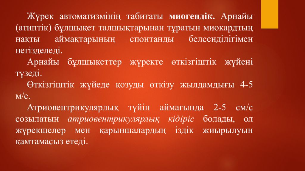 Слайд 9: Жүректің ырғақты қозуы мен жүрек автоматиясы