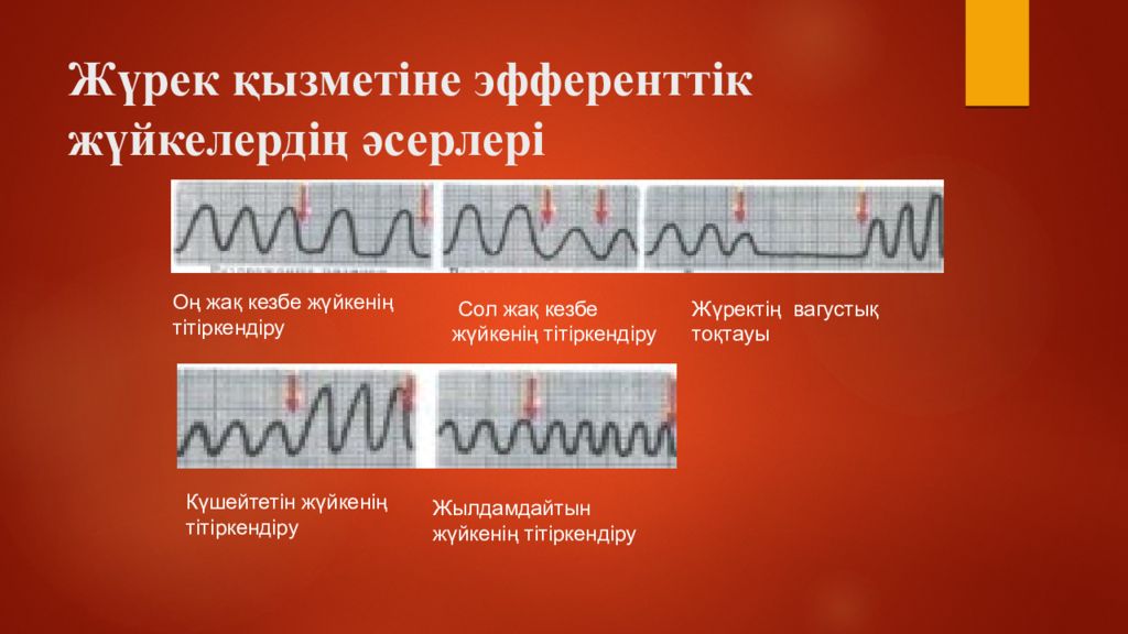 Слайд 30: Жүрек қызметіне эфференттік жүйкелердің әсерлері