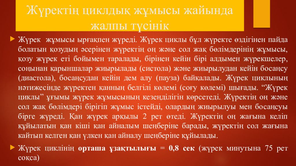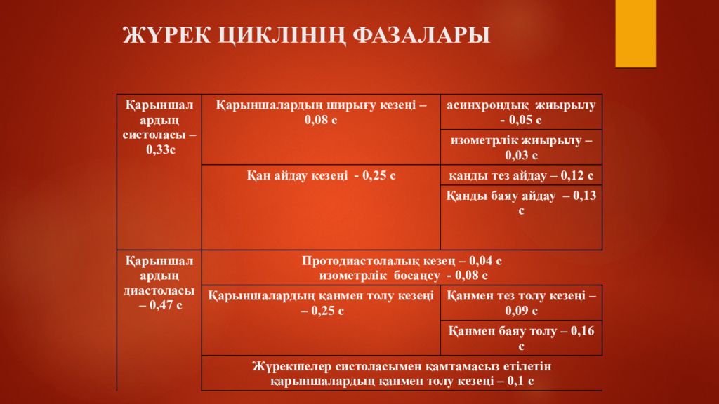 Слайд 19: ЖҮРЕК ЦИКЛІНІҢ ФАЗАЛАРЫ