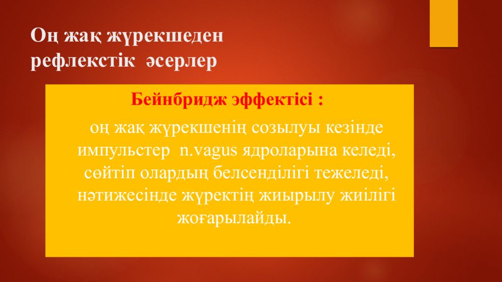 Слайд 35: Оң жақ жүрекшеден рефлекстік әсерлер