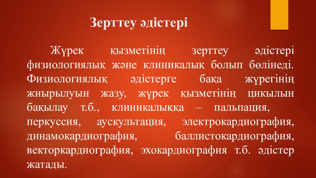 І.Кіріспе ІІ.Негізгі бөлім: 1) Жүрек қабырғасының қабаттары 2) Жүректің циклдық жұмысы жайында жалпы түсінік 3) Жүректің ырғақты қозуы мен жүрек автоматиясы 4)Жүрек қан тамыр аурулары 5)Зерттеу әдістері ІІІ.Қорытынды І V.Пайдаланылған әдебиеттер тізімі