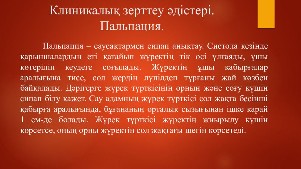Слайд 38: Клиникалық зерттеу әдістері. Пальпация