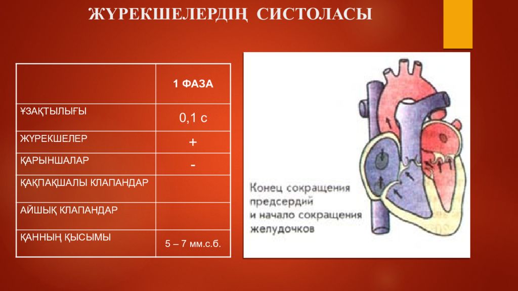 Слайд 18: ЖҮРЕК ЦИКЛІНІҢ ФАЗАЛАРЫ