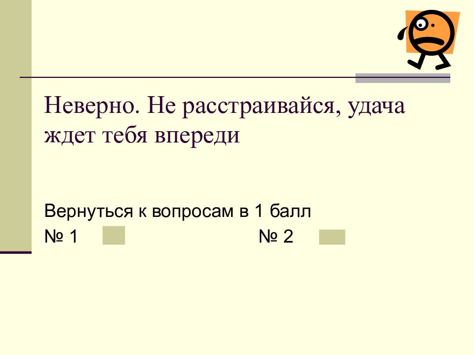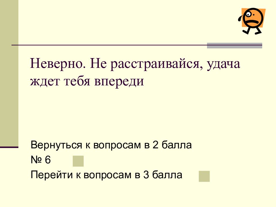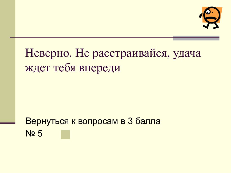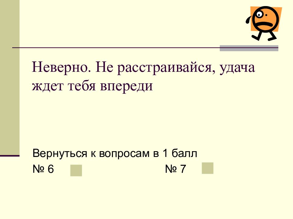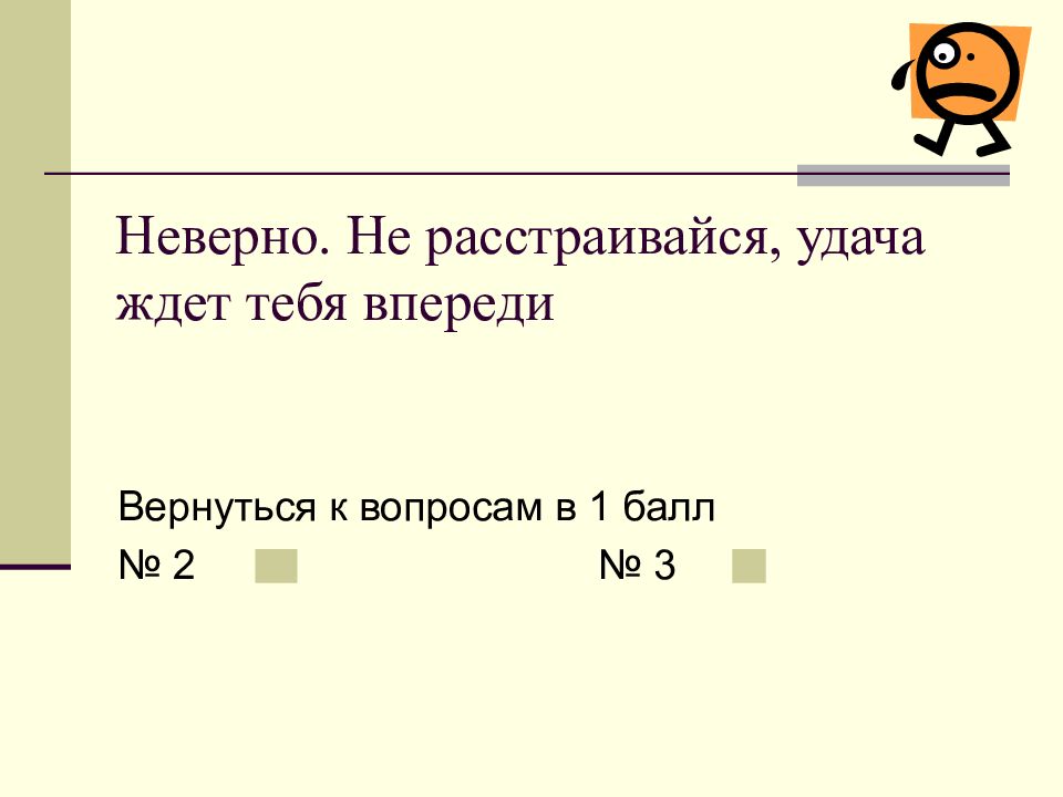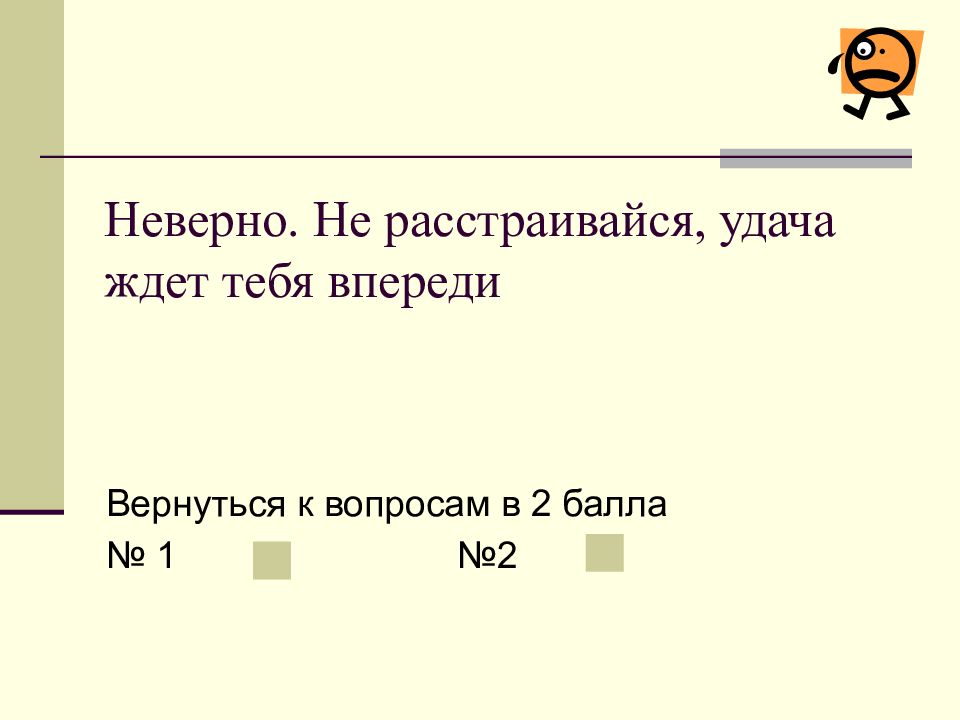 Слайд 31: Неверно. Не расстраивайся, удача ждет тебя впереди
