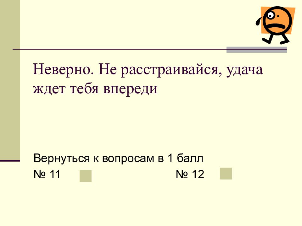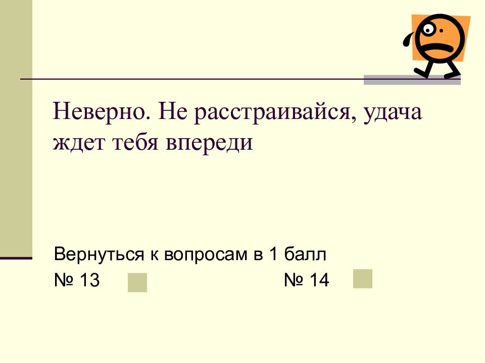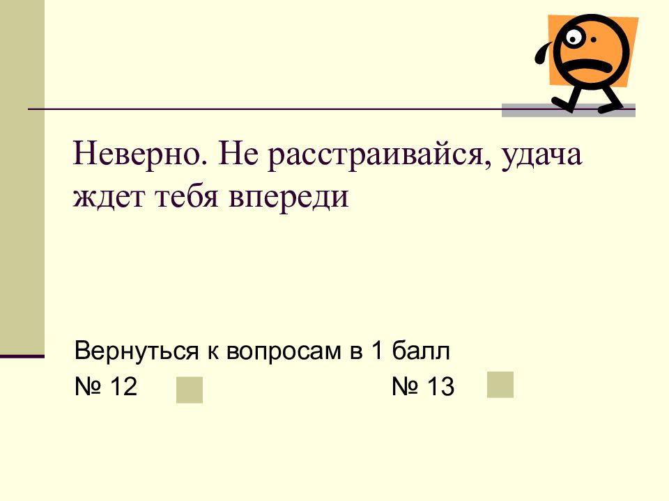 Слайд 13: Неверно. Не расстраивайся, удача ждет тебя впереди