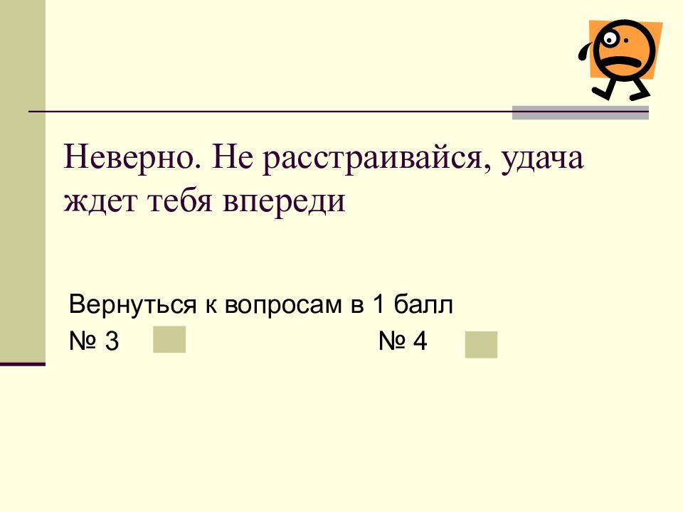 Слайд 34: Неверно. Не расстраивайся, удача ждет тебя впереди