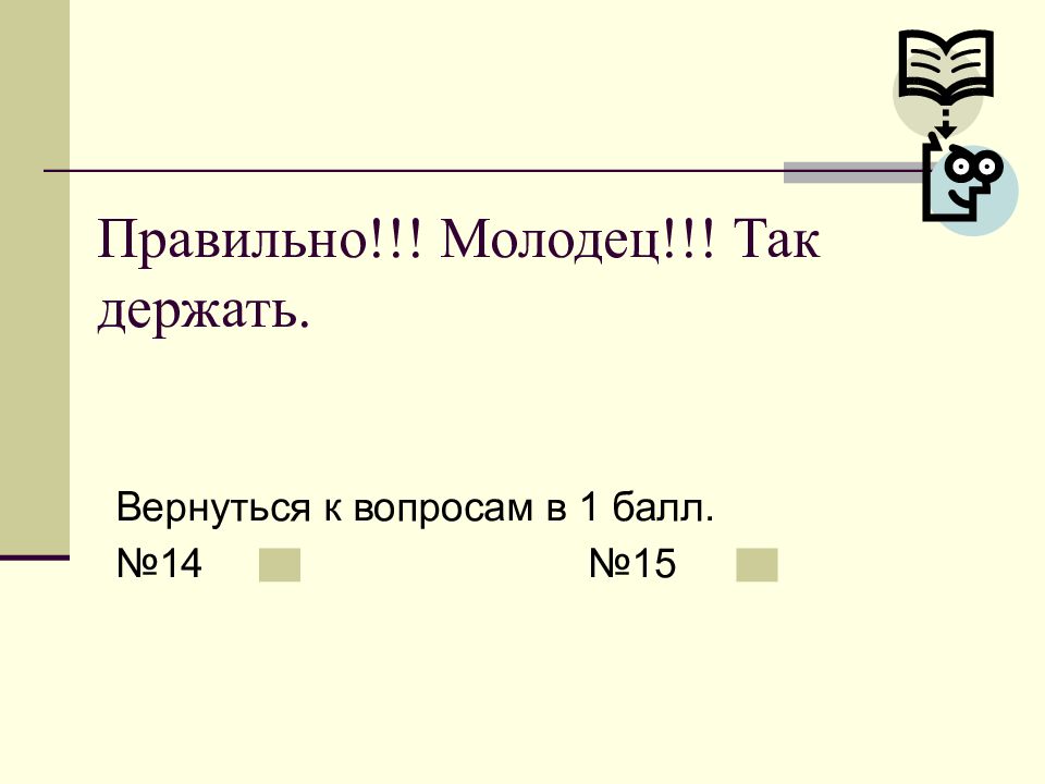 Слайд 15: Правильно!!! Молодец!!! Так держать