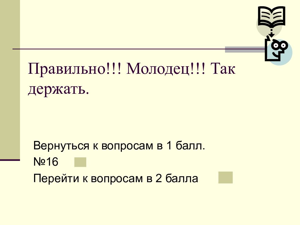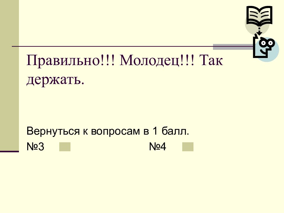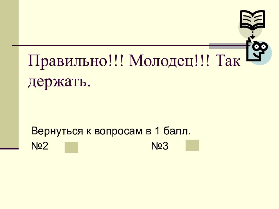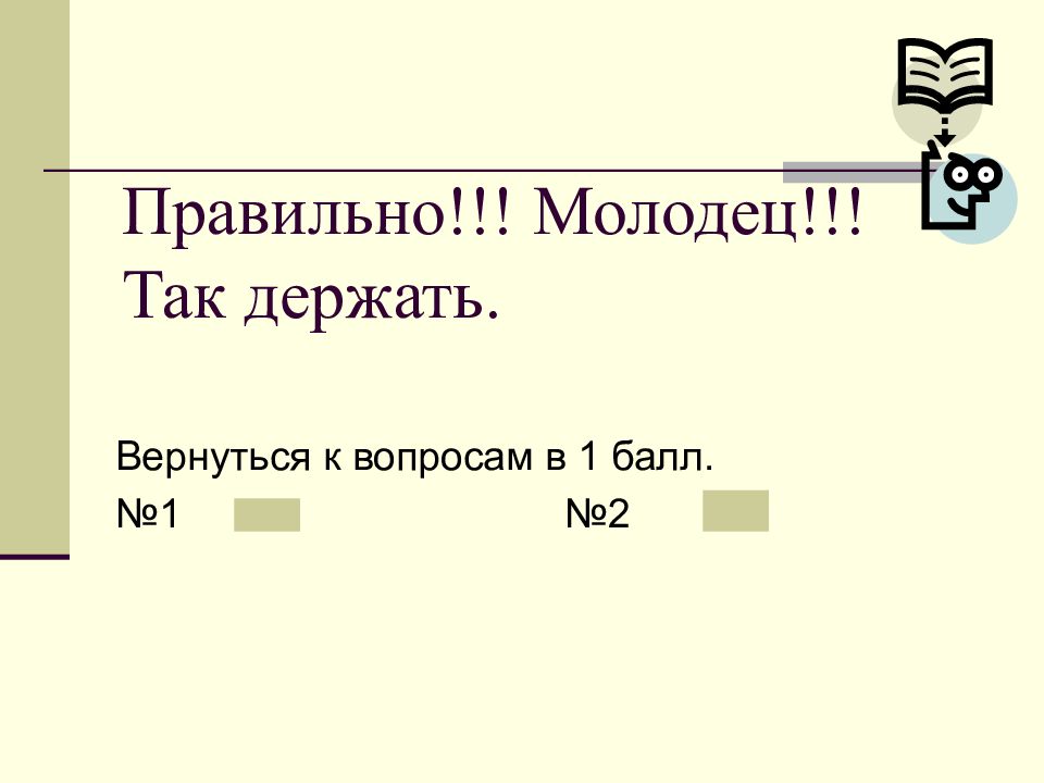 Слайд 18: Правильно!!! Молодец!!! Так держать