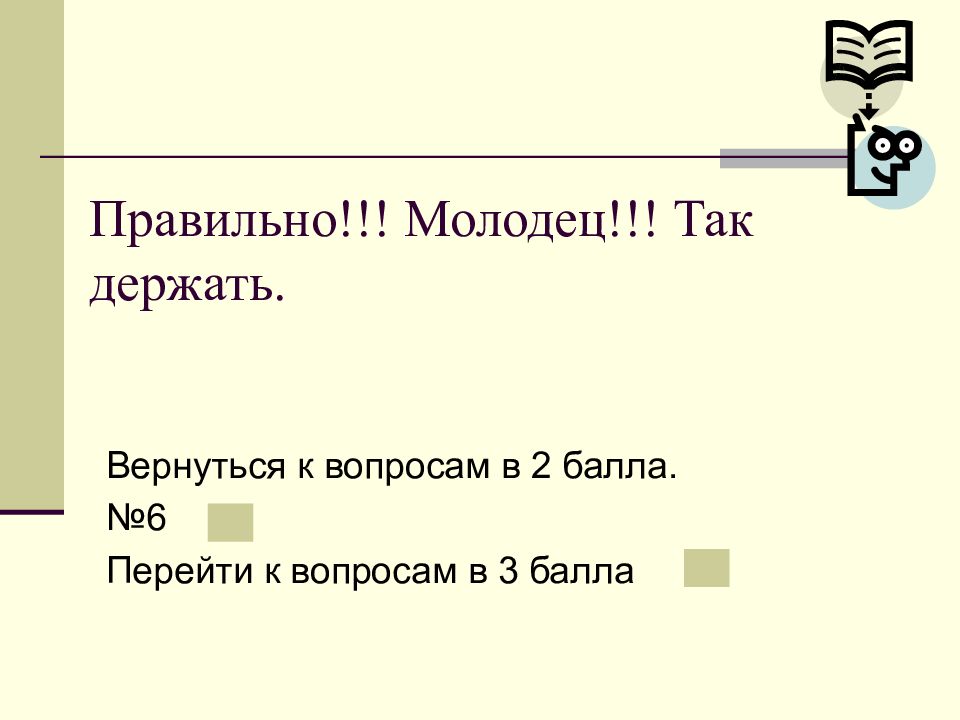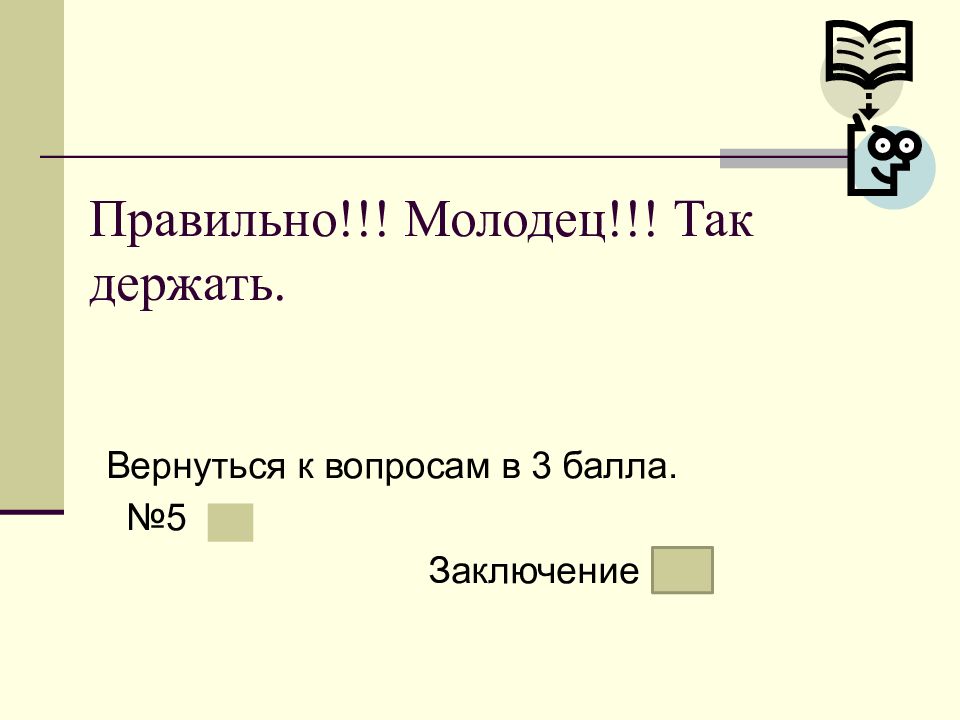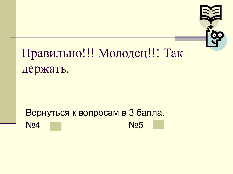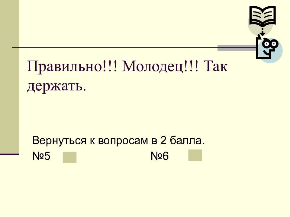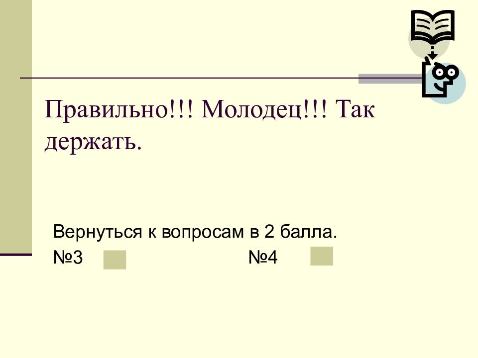 Слайд 18: Правильно!!! Молодец!!! Так держать