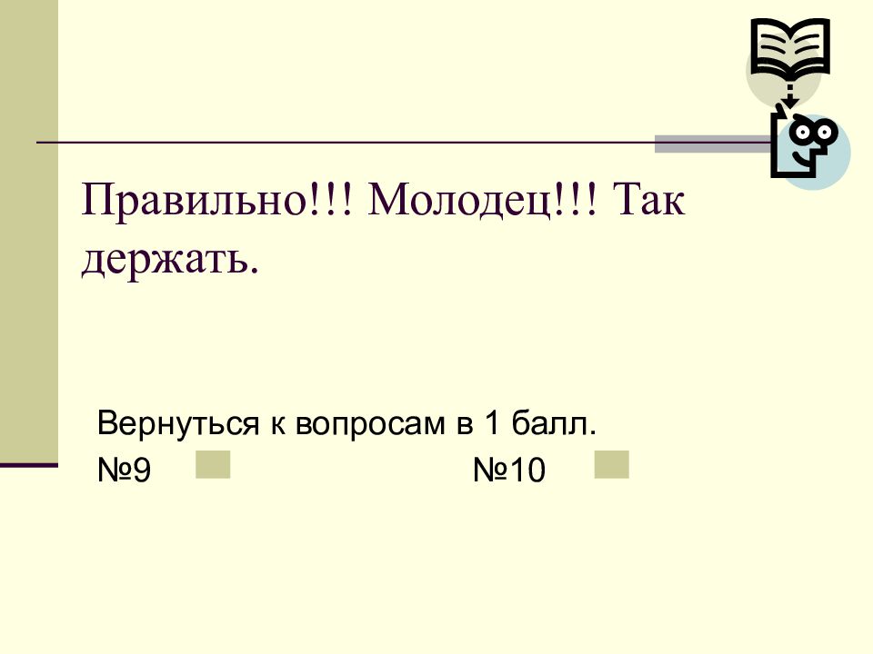 Слайд 9: Правильно!!! Молодец!!! Так держать