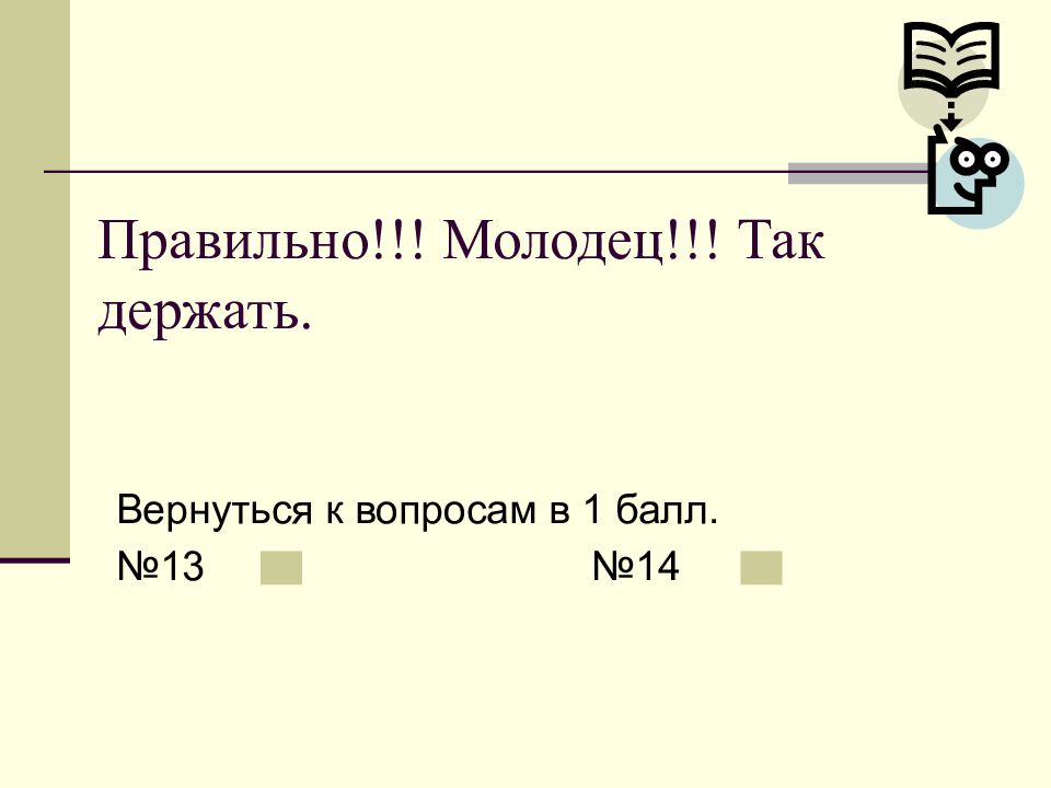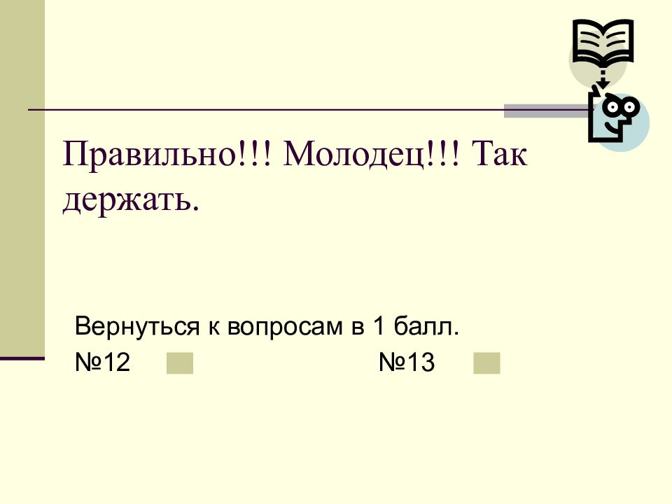 Слайд 12: Правильно!!! Молодец!!! Так держать