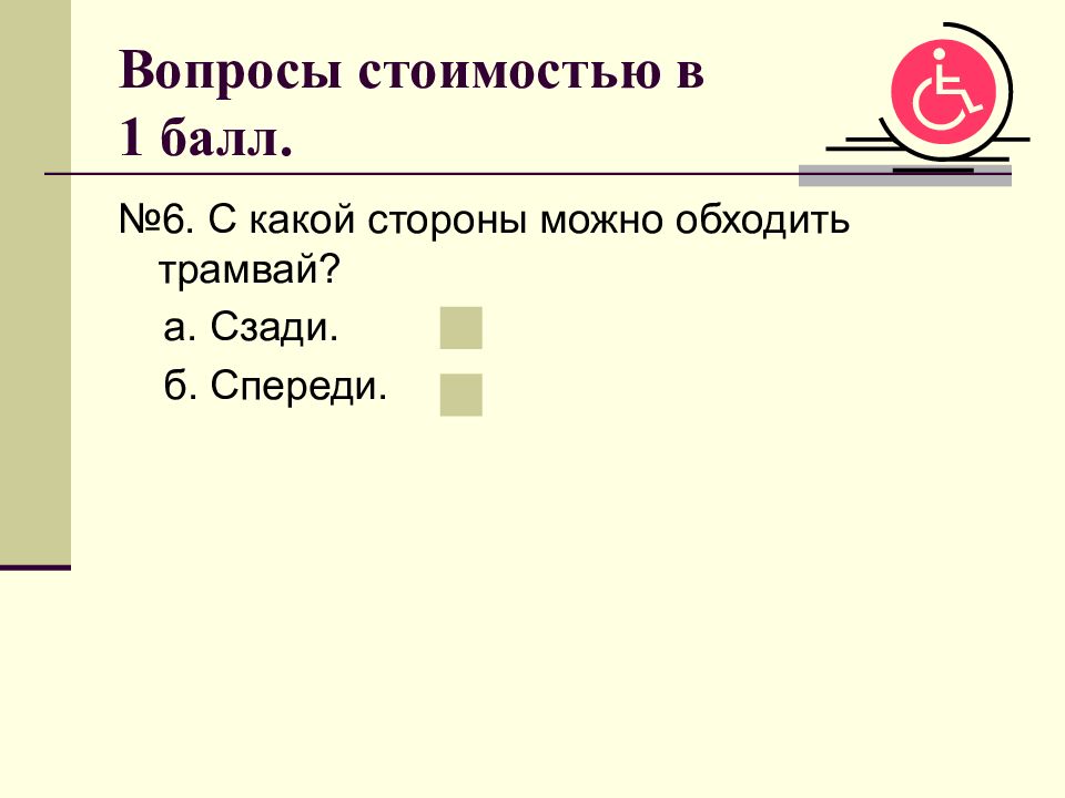 №6. С какой стороны можно обходить трамвай? а. Сзади. б. Спереди.