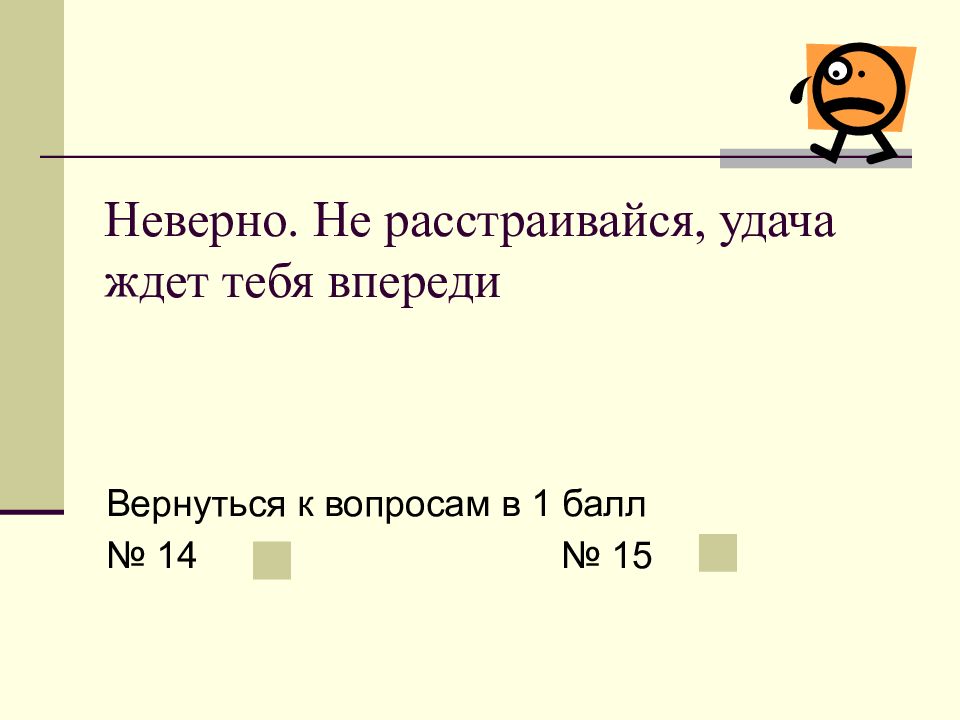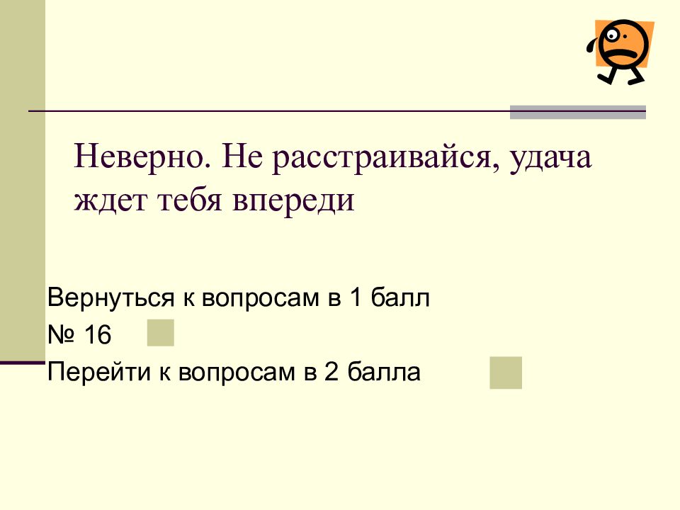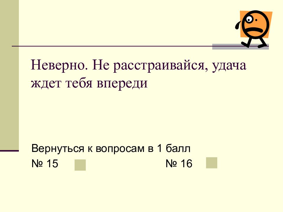 Слайд 16: Неверно. Не расстраивайся, удача ждет тебя впереди