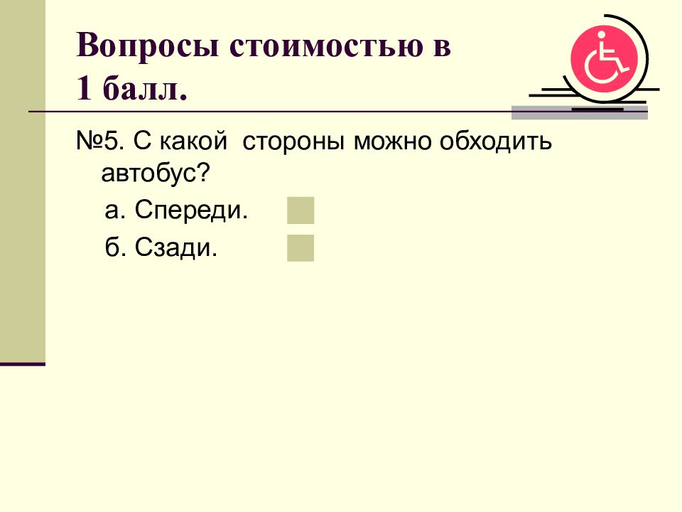 №5. С какой стороны можно обходить автобус? а. Спереди. б. Сзади.